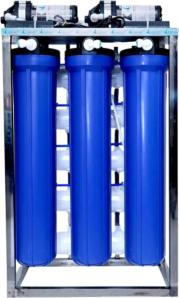 The 50 LPH RO Water Plant is a compact commercial water purification system designed for offices, shops, schools, and small establishments, providing 100% safe, mineral-rich, and great-tasting water at a capacity of 50 liters per hour.